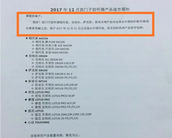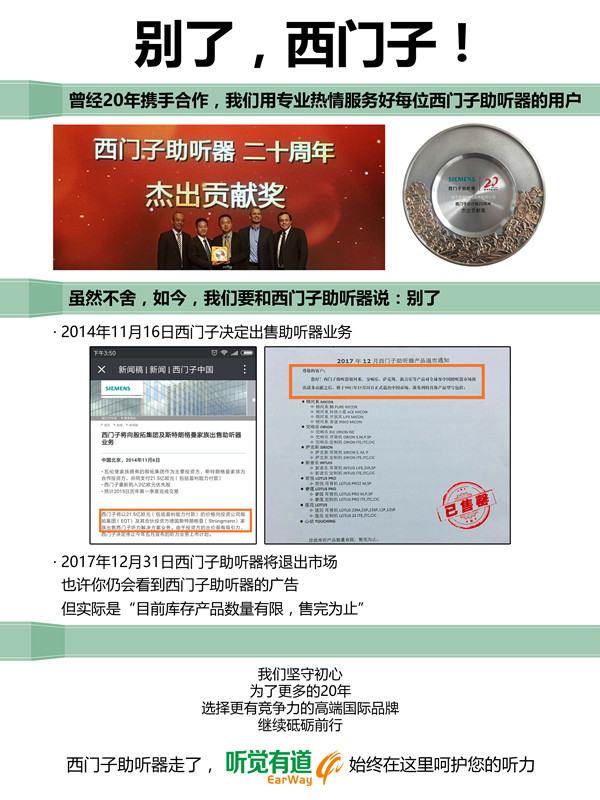 <p microsoft="" yahei="" ui="" simsun="" segoe="" tahoma="" helvetica="" sans-serif="" font-size:="" 14px="" text-align:="" center="" style="padding: 5px 0px; margin: 0px; color: rgb(51, 51, 51); font-family: "Microsoft YaHei UI", "Microsoft YaHei", SimSun, "Segoe UI", Tahoma, Helvetica, sans-serif; font-size: 16px; text-align: center;"><img src="http://www.guisn.com/upfiles/201712110502357735.jpg" alt="" style="border: 0px;" /></p><p microsoft="" yahei="" ui="" simsun="" segoe="" tahoma="" helvetica="" sans-serif="" font-size:="" 14px="" text-align:="" center="" style="padding: 5px 0px; margin: 0px; color: rgb(51, 51, 51); font-family: "Microsoft YaHei UI", "Microsoft YaHei", SimSun, "Segoe UI", Tahoma, Helvetica, sans-serif; font-size: 16px; text-align: center;"><br /></p><p microsoft="" yahei="" ui="" simsun="" segoe="" tahoma="" helvetica="" sans-serif="" font-size:="" 14px="" text-align:="" center="" style="padding: 5px 0px; margin: 0px; color: rgb(51, 51, 51); font-family: "Microsoft YaHei UI", "Microsoft YaHei", SimSun, "Segoe UI", Tahoma, Helvetica, sans-serif; font-size: 16px; text-align: center;"><img src="http://www.guisn.com/upfiles/201712201117438957.jpg" alt="" style="border: 0px;" /><br /></p><p microsoft="" yahei="" ui="" simsun="" segoe="" tahoma="" helvetica="" sans-serif="" font-size:="" 14px="" text-align:="" center="" style="padding: 5px 0px; margin: 0px; color: rgb(51, 51, 51); font-family: "Microsoft YaHei UI", "Microsoft YaHei", SimSun, "Segoe UI", Tahoma, Helvetica, sans-serif; font-size: 16px; text-align: center;"><br /></p><p microsoft="" yahei="" ui="" simsun="" segoe="" tahoma="" helvetica="" sans-serif="" font-size:="" 14px="" text-align:="" center="" style="padding: 5px 0px; margin: 0px; color: rgb(51, 51, 51); font-family: "Microsoft YaHei UI", "Microsoft YaHei", SimSun, "Segoe UI", Tahoma, Helvetica, sans-serif; font-size: 16px; text-align: center;">2014年11月16日西門子決定出售助聽器業(yè)務(wù)</p><p microsoft="" yahei="" ui="" simsun="" segoe="" tahoma="" helvetica="" sans-serif="" font-size:="" 14px="" text-align:="" center="" style="padding: 5px 0px; margin: 0px; color: rgb(51, 51, 51); font-family: "Microsoft YaHei UI", "Microsoft YaHei", SimSun, "Segoe UI", Tahoma, Helvetica, sans-serif; font-size: 16px; text-align: center;"> </p><center microsoft="" yahei="" ui="" simsun="" segoe="" tahoma="" helvetica="" sans-serif="" font-size:="" 14px="" style="color: rgb(51, 51, 51); font-family: "Microsoft YaHei UI", "Microsoft YaHei", SimSun, "Segoe UI", Tahoma, Helvetica, sans-serif; font-size: 16px;"><img src="http://www.guisn.com/upfiles/20171211050740709.jpg" alt="" style="border: 0px;" /><br /></center><center microsoft="" yahei="" ui="" simsun="" segoe="" tahoma="" helvetica="" sans-serif="" font-size:="" 14px="" style="color: rgb(51, 51, 51); font-family: "Microsoft YaHei UI", "Microsoft YaHei", SimSun, "Segoe UI", Tahoma, Helvetica, sans-serif; font-size: 16px;"><br /></center><p microsoft="" yahei="" ui="" simsun="" segoe="" tahoma="" helvetica="" sans-serif="" font-size:="" 14px="" text-align:="" center="" style="padding: 5px 0px; margin: 0px; color: rgb(51, 51, 51); font-family: "Microsoft YaHei UI", "Microsoft YaHei", SimSun, "Segoe UI", Tahoma, Helvetica, sans-serif; font-size: 16px; text-align: center;">2017年12月31日西門子助聽器將正式退出中國(guó)市場(chǎng)</p><p microsoft="" yahei="" ui="" simsun="" segoe="" tahoma="" helvetica="" sans-serif="" font-size:="" 14px="" text-align:="" center="" style="padding: 5px 0px; margin: 0px; color: rgb(51, 51, 51); font-family: "Microsoft YaHei UI", "Microsoft YaHei", SimSun, "Segoe UI", Tahoma, Helvetica, sans-serif; font-size: 16px; text-align: center;"> </p><center microsoft="" yahei="" ui="" simsun="" segoe="" tahoma="" helvetica="" sans-serif="" font-size:="" 14px="" style="color: rgb(51, 51, 51); font-family: "Microsoft YaHei UI", "Microsoft YaHei", SimSun, "Segoe UI", Tahoma, Helvetica, sans-serif; font-size: 16px;"><img src="http://www.guisn.com/upfiles/201712110508305244.png" alt="" style="border: 0px;" /><br /></center><center microsoft="" yahei="" ui="" simsun="" segoe="" tahoma="" helvetica="" sans-serif="" font-size:="" 14px="" style="color: rgb(51, 51, 51); font-family: "Microsoft YaHei UI", "Microsoft YaHei", SimSun, "Segoe UI", Tahoma, Helvetica, sans-serif; font-size: 16px;"><br /></center><p microsoft="" yahei="" ui="" simsun="" segoe="" tahoma="" helvetica="" sans-serif="" font-size:="" 14px="" text-align:="" center="" style="padding: 5px 0px; margin: 0px; color: rgb(51, 51, 51); font-family: "Microsoft YaHei UI", "Microsoft YaHei", SimSun, "Segoe UI", Tahoma, Helvetica, sans-serif; font-size: 16px; text-align: center;">銀河系、交響樂、薩克斯、新音樂、荷悅、睿蓮、蓮花、心動(dòng)……</p><p microsoft="" yahei="" ui="" simsun="" segoe="" tahoma="" helvetica="" sans-serif="" font-size:="" 14px="" text-align:="" center="" style="padding: 5px 0px; margin: 0px; color: rgb(51, 51, 51); font-family: "Microsoft YaHei UI", "Microsoft YaHei", SimSun, "Segoe UI", Tahoma, Helvetica, sans-serif; font-size: 16px; text-align: center;">西門子助聽器系列產(chǎn)品悉數(shù)退市</p><p microsoft="" yahei="" ui="" simsun="" segoe="" tahoma="" helvetica="" sans-serif="" font-size:="" 14px="" text-align:="" center="" style="padding: 5px 0px; margin: 0px; color: rgb(51, 51, 51); font-family: "Microsoft YaHei UI", "Microsoft YaHei", SimSun, "Segoe UI", Tahoma, Helvetica, sans-serif; font-size: 16px; text-align: center;"> </p><center microsoft="" yahei="" ui="" simsun="" segoe="" tahoma="" helvetica="" sans-serif="" font-size:="" 14px="" style="color: rgb(51, 51, 51); font-family: "Microsoft YaHei UI", "Microsoft YaHei", SimSun, "Segoe UI", Tahoma, Helvetica, sans-serif; font-size: 16px;"><img src="http://www.guisn.com/upfiles/201712110509096639.jpg" alt="" style="border: 0px;" /><br /></center><p microsoft="" yahei="" ui="" simsun="